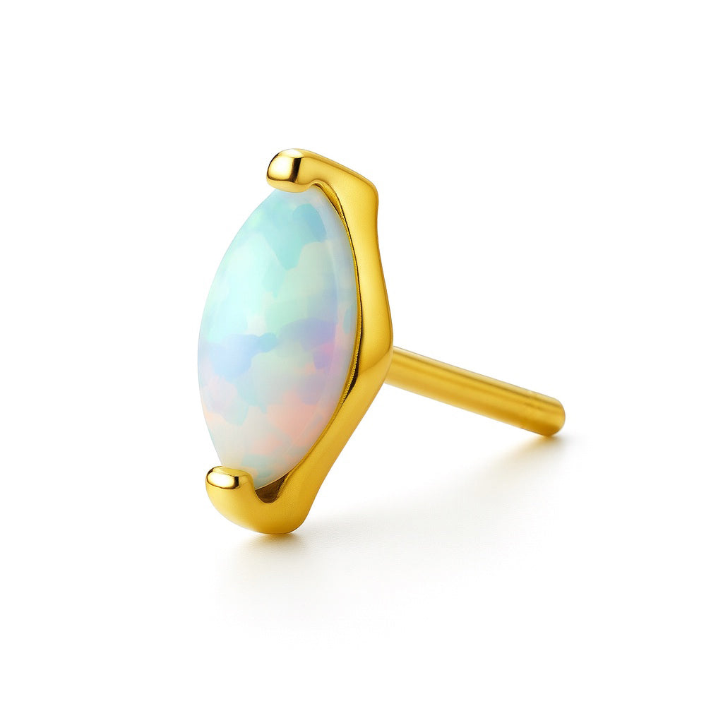 Threadless Piercingsmycke från Invictus - Avlång vit opalit i 24k guld PVD-pläterat titan