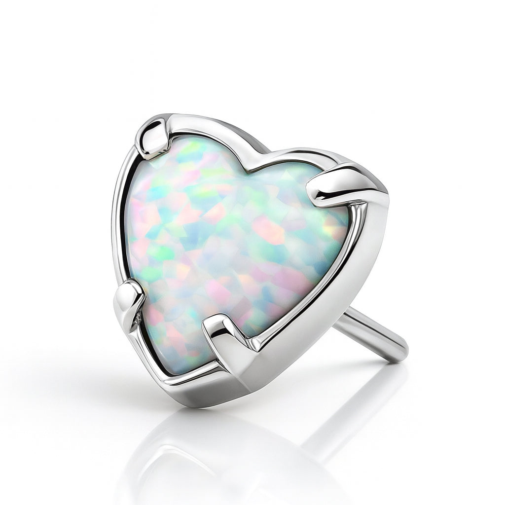 Hjärta med vit opalit - Push fit topp i nickelfritt titan - Threadless piercingsmycke från Invictus