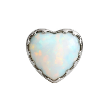 Läcker topp formad som ett hjärta med vit opalit. Denna titantopp är utformad för att passa de flesta piercingar som använder stavar med en tjocklek på 1,2 mm och gängor på 0,9 mm. Du kan se vilken stav som passar till toppen på bilden nedan. Smycket är tillverkat av G23 titan, ett premiummaterial som är särskilt lämpat för piercingsmycken på grund av dess hypoallergena egenskaper. Titan minskar risken för irritation och är ett utmärkt val för nya eller känsliga piercingar. Med sin hygieniska och infektionsresistenta design är det ett hållbart och pålitligt alternativ för långvarig användning.