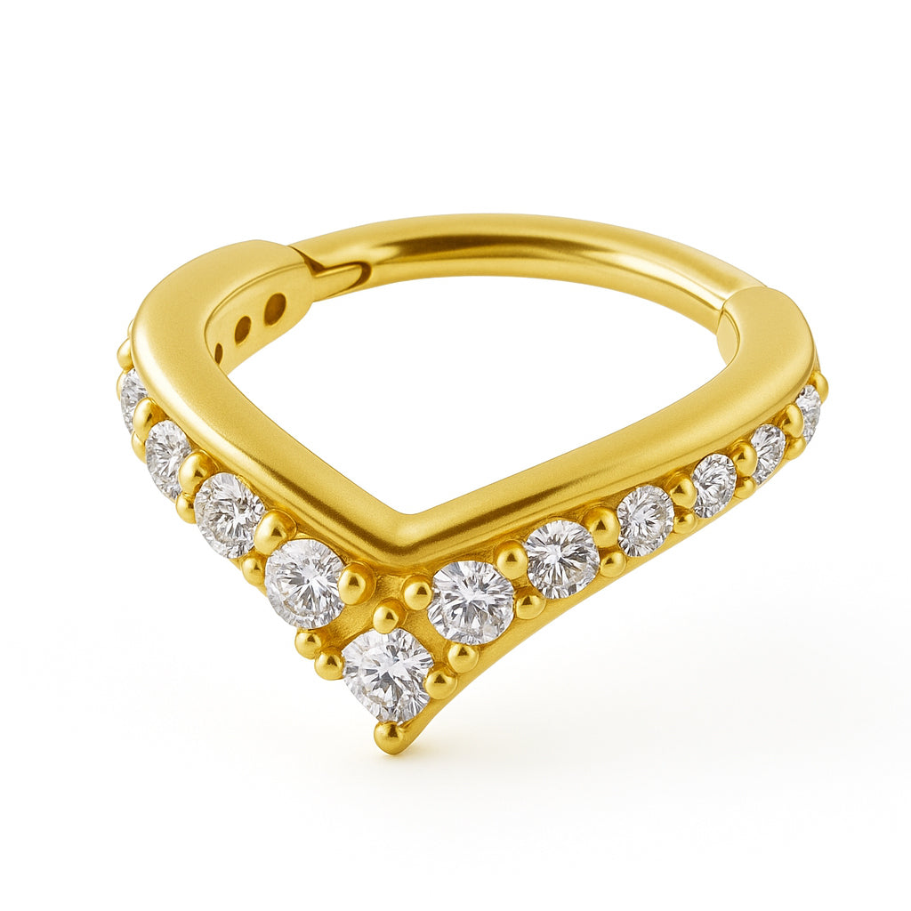 Ring till piercing - Spetsig clicker med vita kristaller - 24k-guld pvd