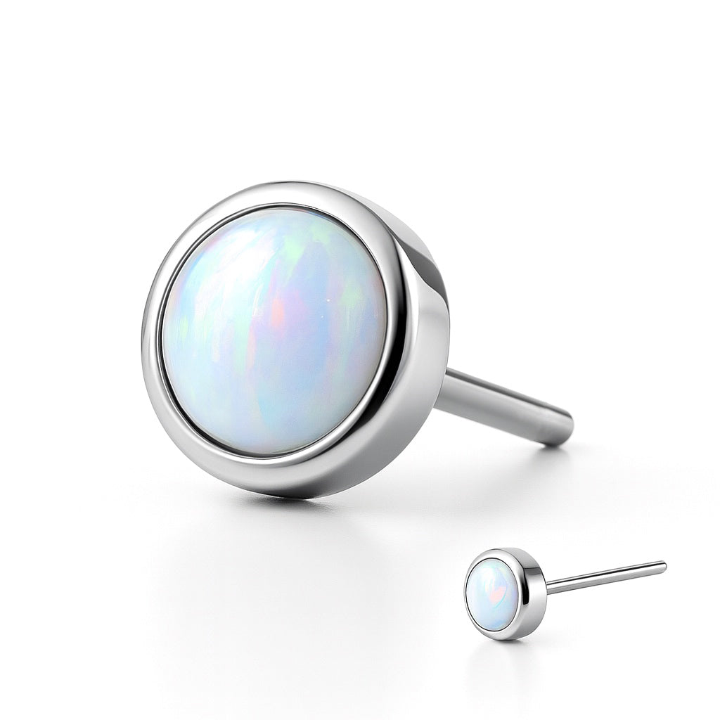 Threadless Piercingsmycke - Topp med vit rund opalit till gänglösa stavar