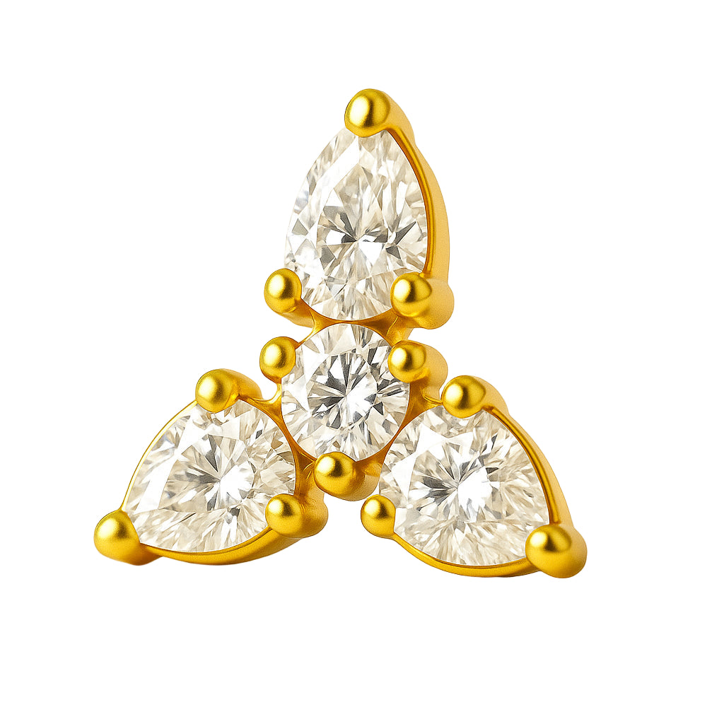 Trinity med kristaller - Topp till piercing - Piercingsmycke i 18K PVD guldpläterat nickelfritt titan