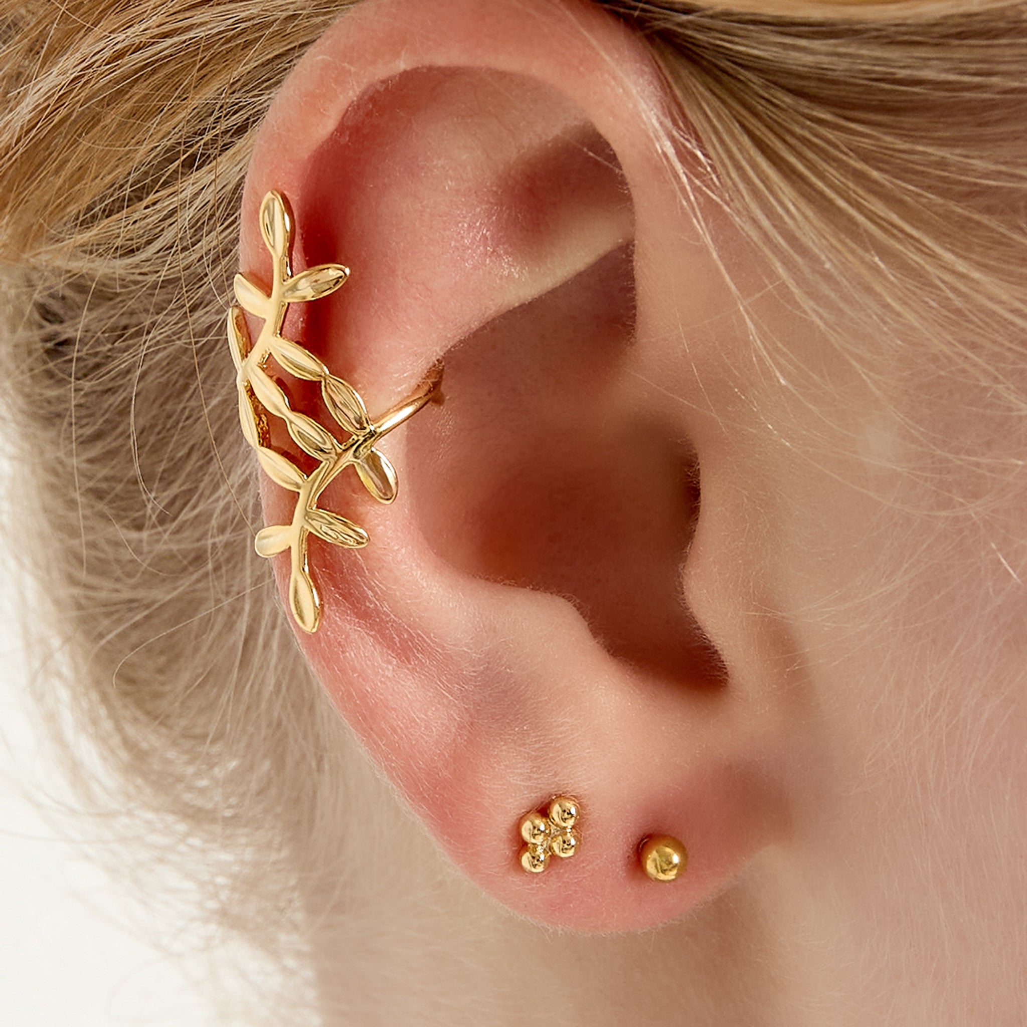 Börja med att trä på din ear cuff högst upp på det tunnaste partiet på örat. Sedan dra eller vrider du försiktigt ner din ear cuff så att den sitter fint på det område på örat som du önskar smycka.