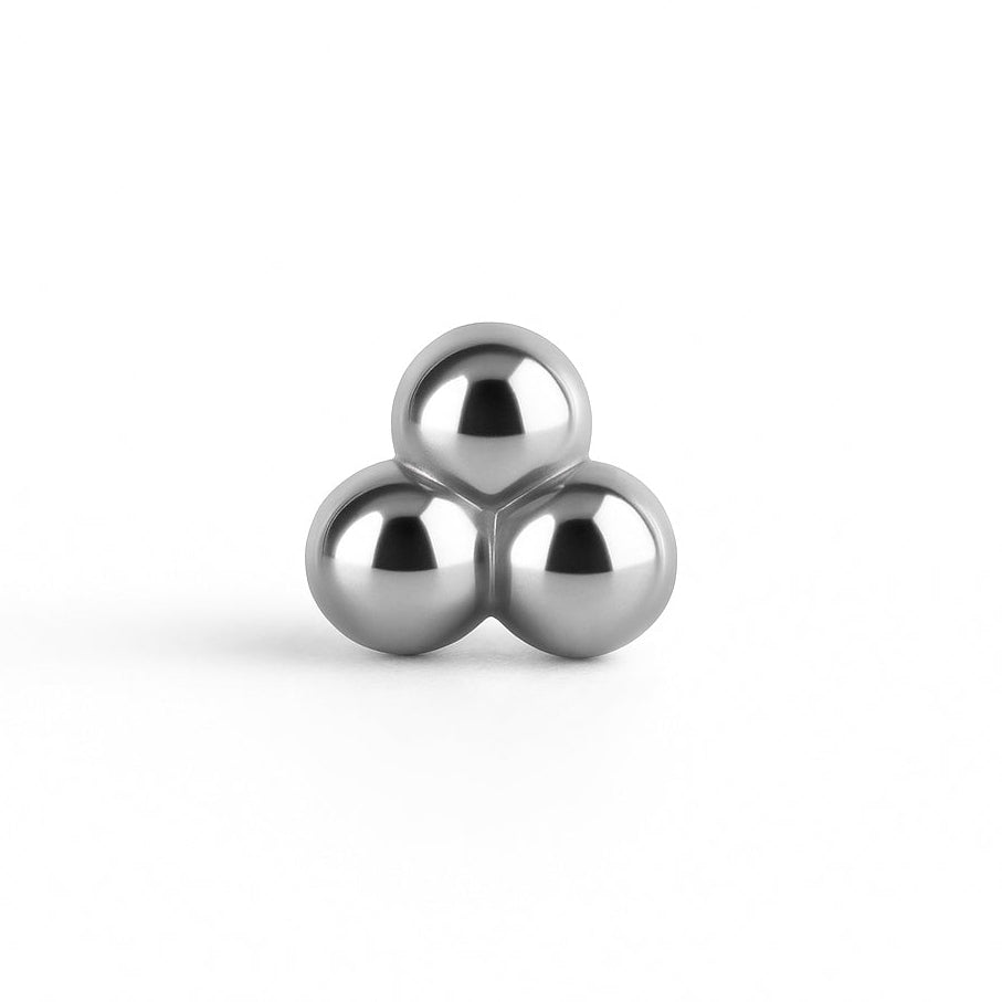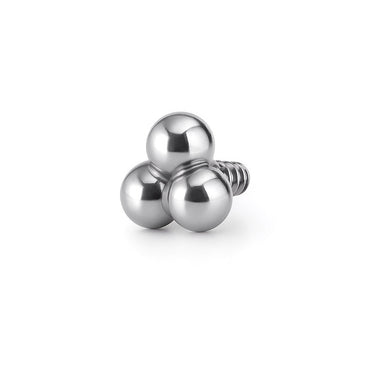 Snygg liten topp med motiv av tre sammansvetsade kulor. Denna topp passar perfekt till i stort sett alla piercingar där du kan använda en stav på 1.2 mm i tjocklek med 0.8 mm-gängor. Vilken stav som passar till denna topp kan du se på bilden här nedanför.