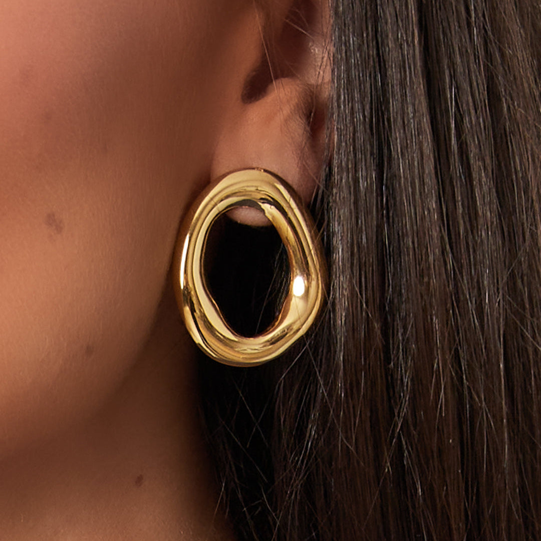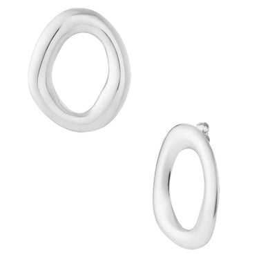 Dessa örhängen har en oregelbunden oval form som ger ett modernt uttryck med enkel design. Tillverkade i nickelsäkert kirurgiskt stål som är slitstarkt och behåller sin glans över tid. Den polerade ytan gör örhängena lättkombinerade med både vardagskläder och mer uppklädda stilar. Ett lätt och bekvämt smycke för daglig användning.