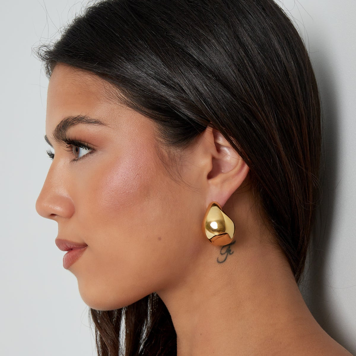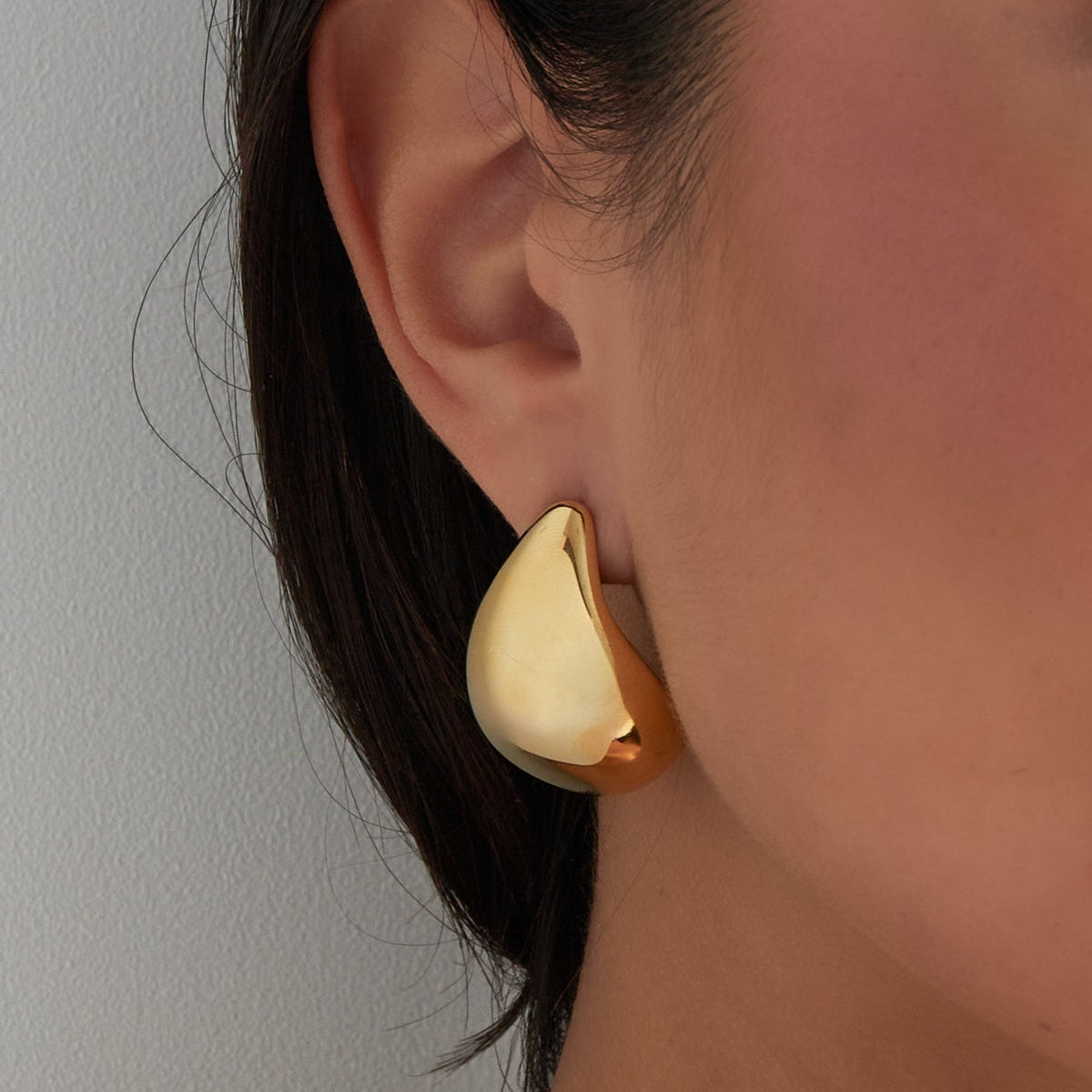 Stiftörhängen med en mjukt droppformad siluett och polerad finish. Tillverkade i nickelsäkert, vattentåligt kirurgiskt stål som behåller sin glans.