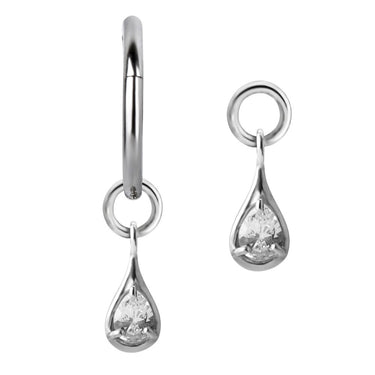 Hängsmycke till ring - Berlock till örhängen i med en droppformad vit kristall