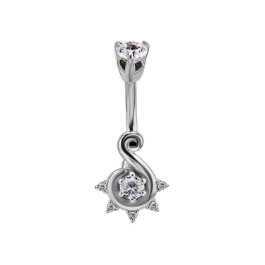 Navelsmycke i nickelsäkert material med vita kristaller.