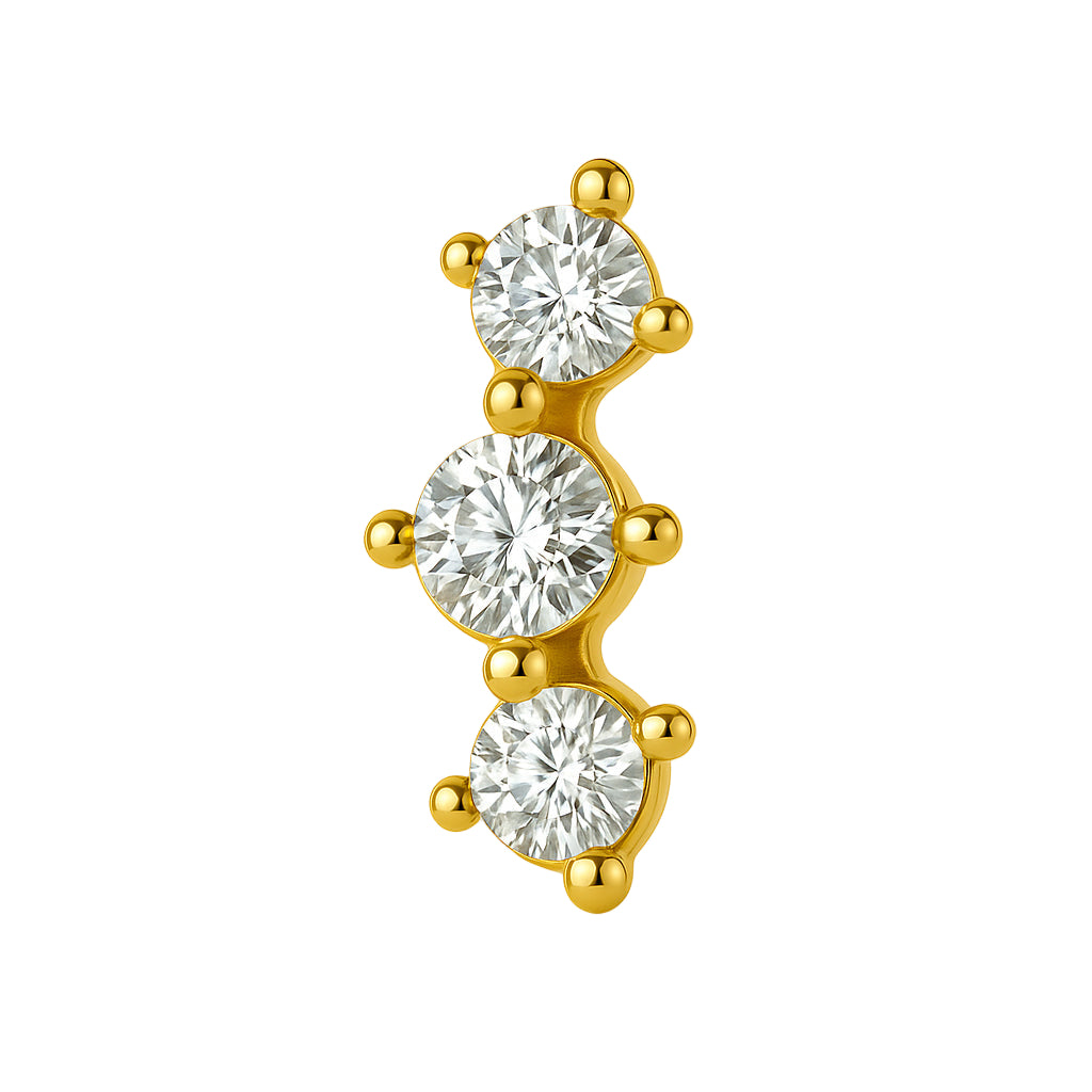 Tre kristaller - Topp till piercing - PVD Guld
