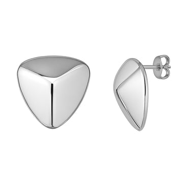 Stiftörhängen i bold design med mjukt formad, triangulär yta. Tillverkade i vattentåligt, nickelsäkert kirurgiskt stål med polerad yta som behåller sin glans över tid.