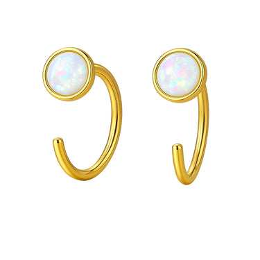 Ear Huggies - Hoops örhängen i 18k guldpläterat silver med vit opalit