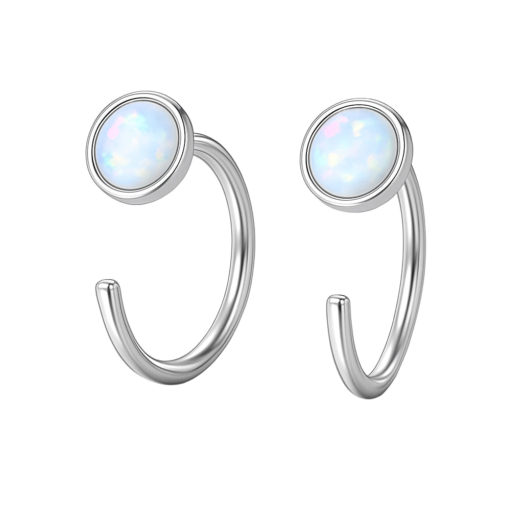 Ear Huggies - Hoops örhängen i äkta silver med vita opaliter