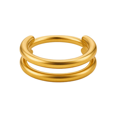 Elegant dubbel clicker-ring i 18k PVD-guldpläterat titan. Allergivänlig och vattentålig – perfekt för helix, septum och conch.