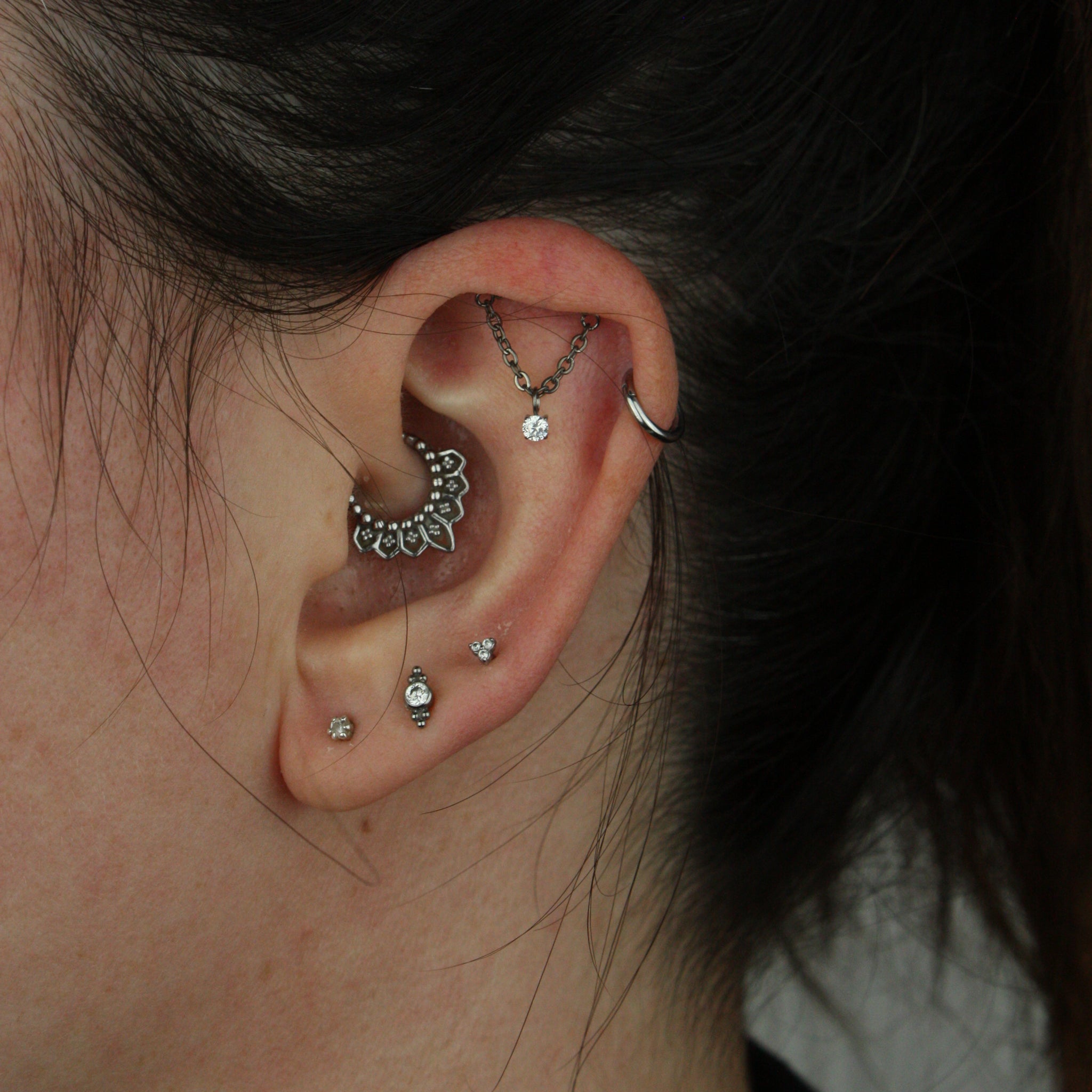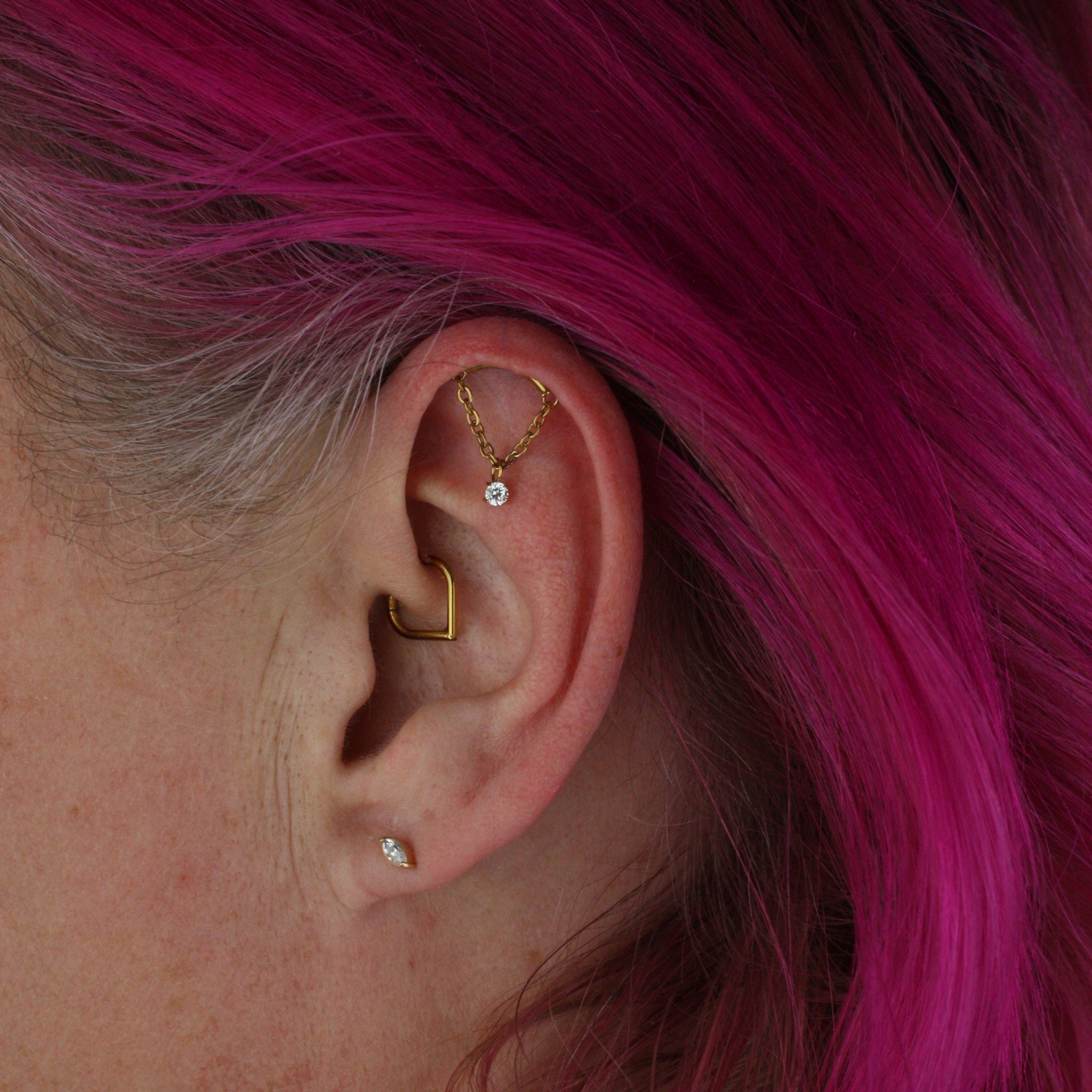 Hidden helix topp med kedja och vit kristall - Piercingsmycke i i PVD guldpläterat titan