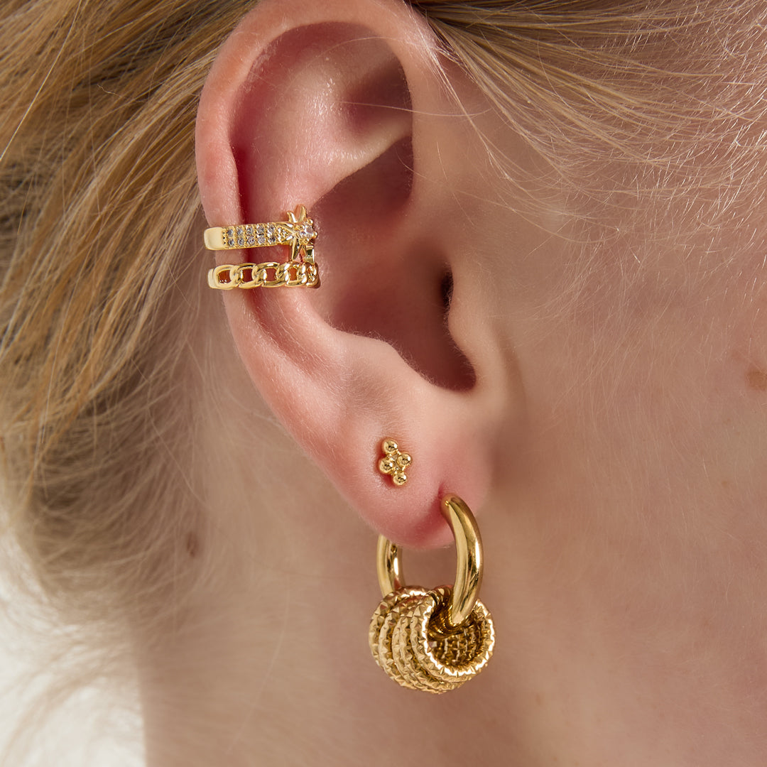 Hoops örhängen med hängande ringar – 18K PVD guldpläterat kirurgiskt stål