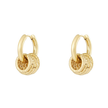 Hoops-ringar till öronen i guldigt kirurgiskt stål med hängsmycken och vita pärlor. Örhängen i spännande design tillverkat i nickelsäkert material.