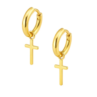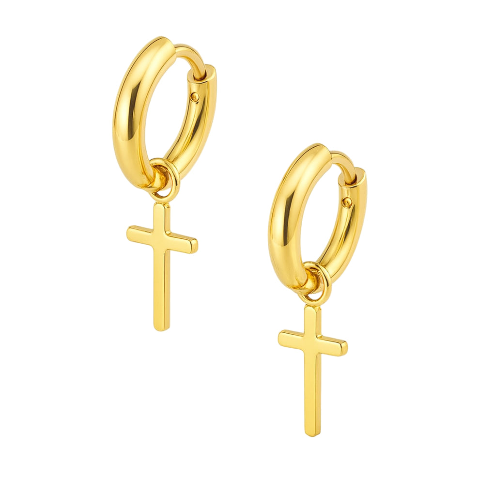 Huggie örhängen - Guldiga Creoler i kirurgiskt stål - Kors