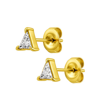 Studs - Örhängen i guldpläterat kirurgiskt stål med vita kristaller. Små stilrena stiftörhängen med en trekantig form.