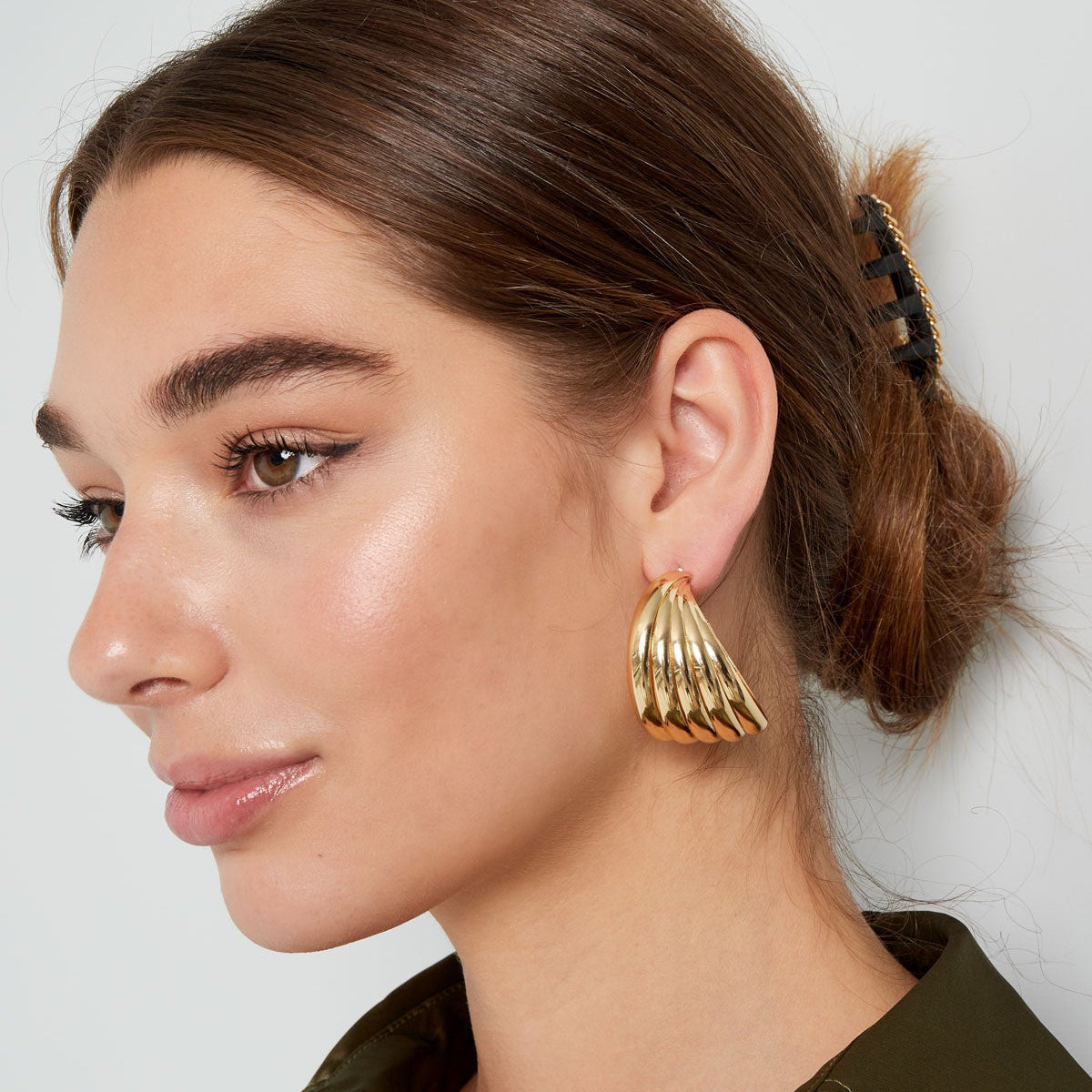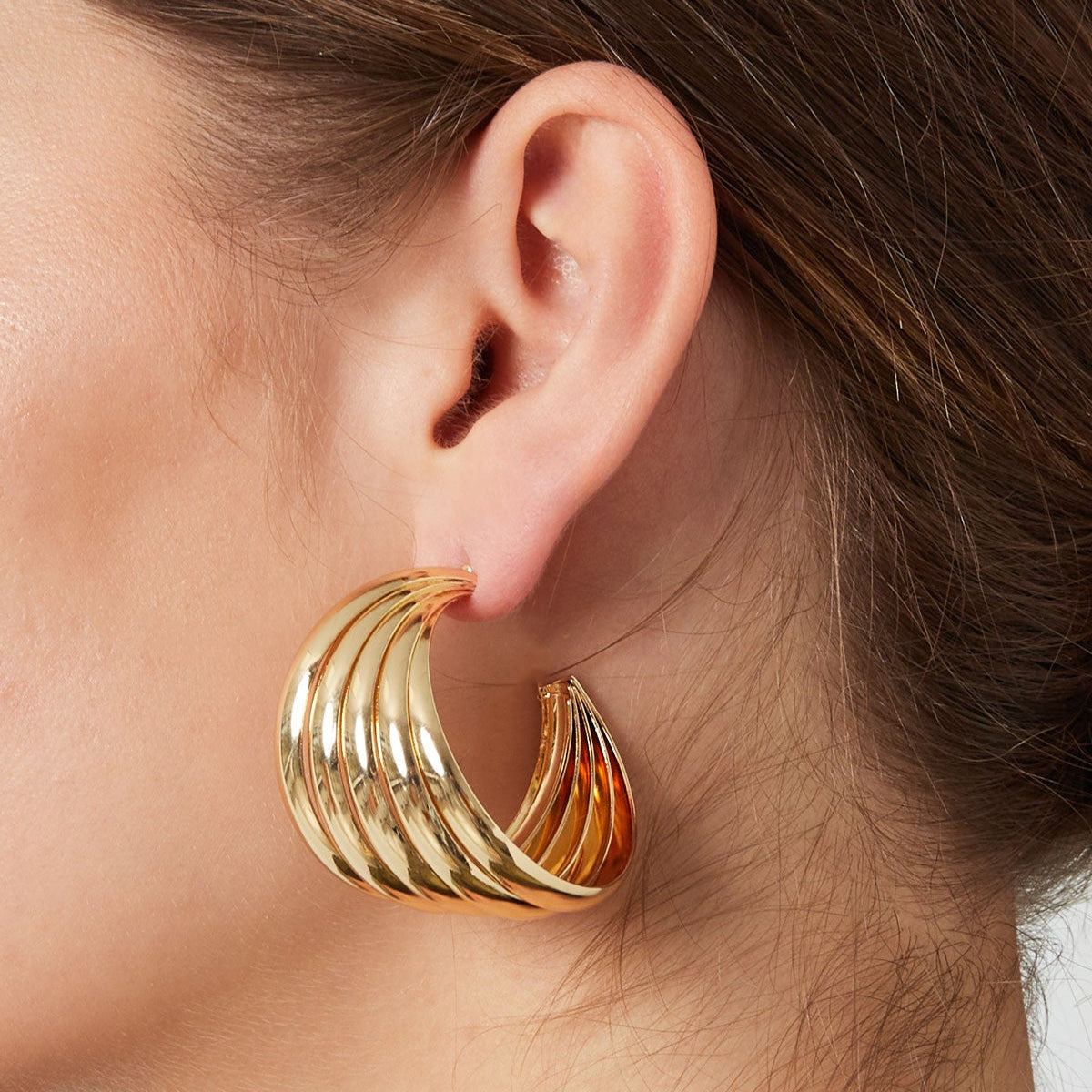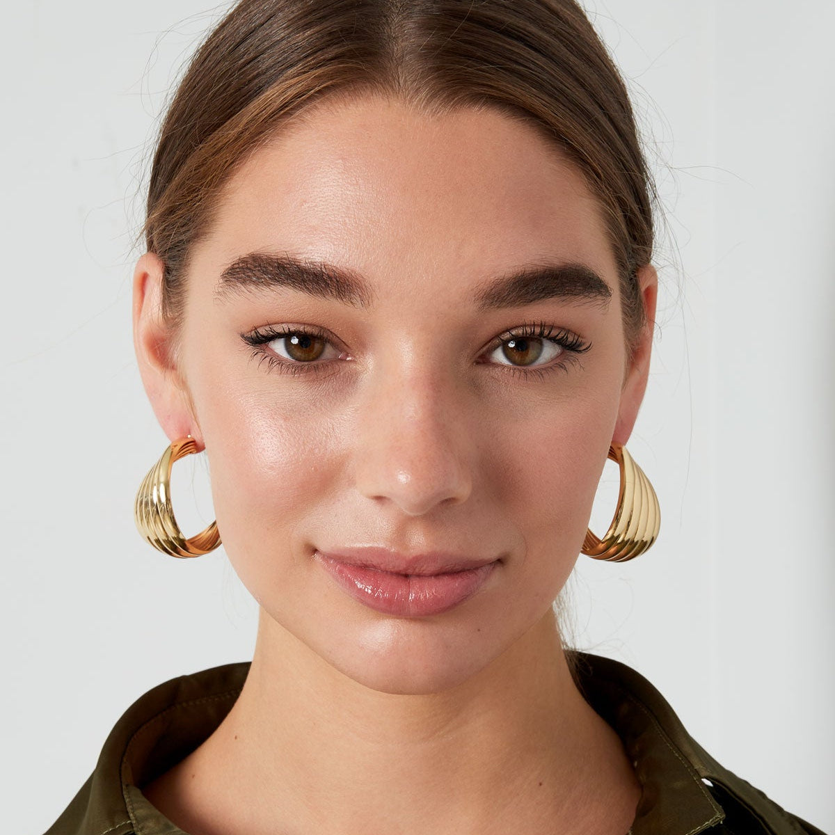 Dessa stora hoops kombinerar volym med en ren och stilren form. Den ribbade ytan skapar ett elegant djup i designen och ger örhängena ett exklusivt uttryck.