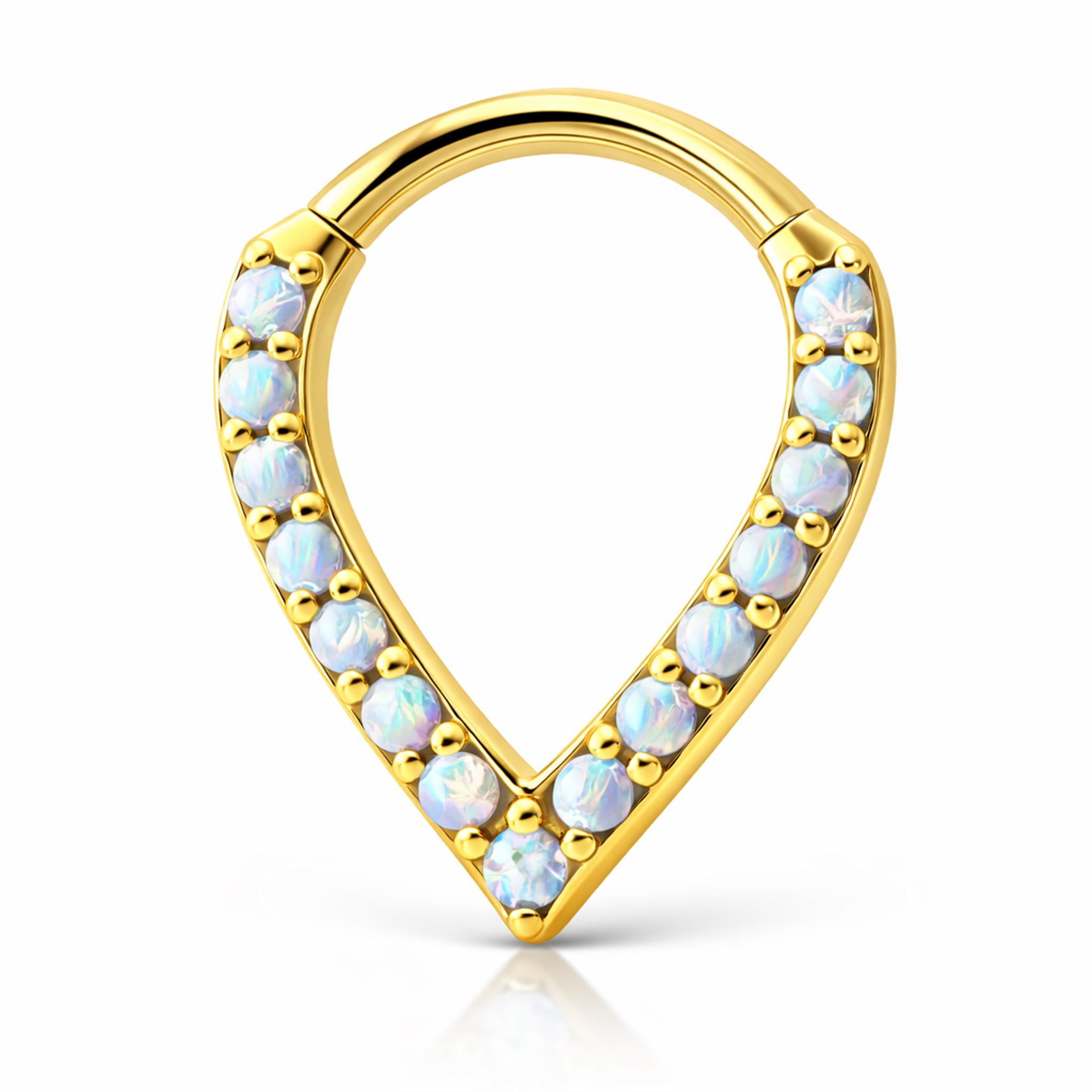 Piercingsmycke - Clicker i droppformad design - Guldpläterat kobolt-krom med vita stenar